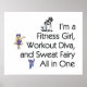 Ich bin ein Fitness Mädchen, Workout Diva, und Sweat Fairy, alles in einem. Hol dir den Dreifach-Slogan des Mädchens für die Gesundheitsfrau, die trotz des Schwitzes fit, trainiert und süß sein Lieben hat. Cool. Spaß. Hip. Genau richtig für dich!