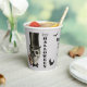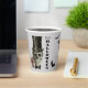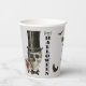 Hier ist eine lustige Halloween-Party-Papier-Tasse, die einen grauen Schädel mit einer Bogen-Krawatte und einen formalen Top-Hut aufweist. Das Bild erscheint zweimal um den Becher herum, wobei die eigene Nachricht schwarz zwischen ihnen erscheint. Auf der anderen Seite ist ein vertikaler Text, der "Happy Halloween" in schwarz sagt. Schauen Sie sich die passenden Produkte in unserem Shop an.