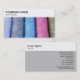 Eine Visitenkartenvorlage mit einem weißen oberen Bereich von 0,6" (15,24 mm) und Platz für ein Foto oder Bild darunter. Erhältlich mit einer Vielzahl von attraktiven Bildern oder Sie können Ihr eigenes Bild hinzufügen. Firmenname und Geschäftstyp/Zitat auf der Vorderseite, die auf den verlassen Platz eingestellt ist. Das gleiche Grundlayout wird auf der Rückseite der Karte wiederholt, jedoch ohne das Foto. Der Name und der Titel des Auftrags befinden sich auf der links oberen Kontrollleiste und den Angaben auf der Vorderseite der Karte. Die Adresse, Telefonie, Web- und E-Mail-Daten befinden sich im unteren Bereich rechts im unteren Bereich. Der untere Bereich hat einen flachen Hintergrund, der auch individuell angepasst werden kann. Diese Vorlage kann so verwendet werden, wie sie ist oder weiter angepasst werden kann. Neben der Möglichkeit, Fotos Ihrer Produkte oder Bilder zu zeigen, die für Ihr Unternehmen relevant sind, eignet sich das Foto besonders für eine Vielzahl von Dekorationsbildern, Fotos aus der Natur, z.B. Details von Blume und Bäumen oder sogar ganz abstrakte Designs und Dekorationsmuster etc. Die Vorlage bietet auch viel Platz zum Hinzufügen zusätzlicher Logos, z.B. oben rechts in den oberen Panels.