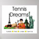 Wenn Sie davon träumen, eines Tages in Paris, London, Australien oder New York zu spielen oder sogar zu besuchen und ein oder zwei Open zu gewinnen, dann erhalten Sie diesen Tennis Dreams Slogan mit lebendiger Grafik. Ideal für Tennis, Tennisprofi oder einfach nur für Tennisfans.