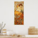 Eine Jugendstil-Abbildung des Edelsteintopaz. Topaz ist der Geburtsstein des November. Es tritt in vielen Farben auf; das Poster repräsentiert Kaiserliches Topaz, das tiefgoldgelb ist. Topaz soll vor Neid, Krankheit und schwarzer Magie schützen, es fördert die Selbsterkenntnis und Selbstvertrauen.