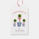 Fügen Sie Ihren Urlaubsgeschenken eine Touch Eleganz mit diesem wunderbar personalisierten Geschenketikett hinzu. mit einer zarten Aquarelldarstellung von drei Boxholztopien, die mit rotem Band in klassisch-blau-weiß geklebt sind,