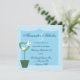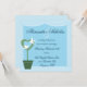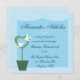 Ein Paar weiße Tauben sitzt auf einem grünen, herzförmigen Oberteil in einem großen grünen Topf vor einem himmelblauen Hintergrund, der mit sanft blauen Vorhängen auf dieser süßen Hochzeitseinladung aufgesetzt ist. Alle anpassbaren Texte können leicht an Ihre eigenen Bedürfnisse angepasst werden. Aus meinem originalen, digital kreierten Design.