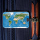 This detailed world map illustration features realistic topographic coloring that highlights Earth’s natural terrain and elevation. Continents are rendered in rich greens, browns, and tans to reflect vegetation, mountains, and deserts, while deep and shallow ocean blues add depth and contrast. The design offers a clean, informative, and visually striking representation of the planet, ideal for geography lovers, educators, and earth science enthusiasts.