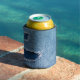 Torn denim Stoff Textur, blaue Farben. Dosenkühler