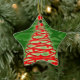 Passen Sie die Sterne auf, in diese dekorative Verzierung mit einem roten TornadoWeihnachtsbaum umherzugehen, der herum die Sternverzierungen mit einem grünen Hintergrund mit einem dunkelgrünen Muster in ihm spinnt.
