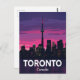 Capture the dazzling nightlife and iconic architecture of Toronto, Canada, with this stunning postcard. It features the famous Toronto City Tower dominating the downtown skyline silhouette against a vibrant pink and purple sunset. Designed in a cool retro travel poster style, this postcard is perfect for sending greetings, keeping as a memento, or framing as a piece of wall art. Ideal for Canadians, travelers, and city enthusiasts who love modern landmarks and bold, colorful designs. The image showcases the beautiful waterfront and city views from Lake Ontario.