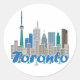 Künstlerische Darstellung von Torontos charakteristischen Wolkenkratzern und dem ikonischen CN Tower mit Segelbooten im Vordergrund.