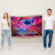 Ein helles, mehrfarbiges (rotes, lila, blaues) Schleifenbild mit rotativen Fraktalen. Fügen Sie Ihren eigenen Text hinzu.