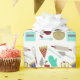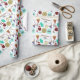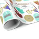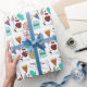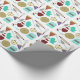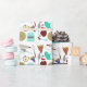 Packpapier, das ein themenorientiertes Muster der Torte mit Illustrationen eines Ofens, der Frucht, der Küchengeräte und der Torten kennzeichnet.