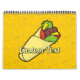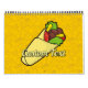 Cartoon Illustration der Tortilla Sandwich-Wrap. Junk Food Kontur Icons Gelbe Muster Hintergrund. Eigener Text.