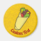 Cartoon Illustration der Tortilla Sandwich-Wrap. Junk Food Kontur Icons Gelbe Muster Hintergrund. Eigener Text.
