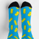 Fun socks patterned with Tortillas, Burritos, Fajitas, and Enchiladas on a bright blue background. Great gift for chefs and Mexican food lovers.
