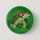 Tortoise in der Weihnachtsmannmütze auf grün Button
