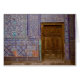 Eine verzierte hölzerne Tür in einer Wand bedeckt mit Encausticfliesen an Toshxauli Palast, Khiva, Usbekistan. Fotografie durch Sabine Steinmüller.
