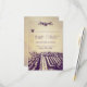 Toskanische Vintage Weinberg Hochzeitskarte RSVP - mit einem Vintagen oder rustikalen Pergament-Hintergrund und einer Weinbergslandschaft am Boden. Die Spitze hat ein Design von Trauben, Reben und Blätter in einer Aubergine - Lapis - lila Schatten (Hexenfarbencode #2D023C).