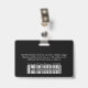 Easily personalize this Custom cool elegant total Black Horizontal Employee Name Badge with Photo, Scan Bar Code or Qr code and business logo. A simple business design in navy blue and white colors fully customizable in front and back sizes, sans-serif basic and modern fonts and a professional and clear look. These standard security id name tags badges are avaiable with lanyard, metal clip or with retractable. You can personalize your id badge cards choosing any background color and any font style with Graphic Design editor by clicking on customize further. No minimum order.
