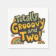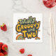 Diese spielerischen Baby-Geburtstagsnapkins verfügen über einen kühlen Retro-Schriftart mit einem famosen Ambiente, um den Satz "Totally Groovy and Two!" zu präsentieren. Es ist warm und erdig
