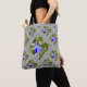 Überall, wo man hingeht, kann man sich eine wunderschöne Totentasche mit Fotos von hübschen blauen Schmetterlingsbusch-Blume ausbreiten, umgeben von Rändern, die aus den einzigartigen Baumrindenmustern hergestellt sind.