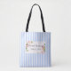 Blauer und weißer Streifen Tasche mit Blume einfügen, um Ihren personalisierten Namen und Titel (kann in Trauzeugin geändert werden). Fügen Sie auch Ihr Hochzeitstag hinzu. Perfektes Brautjunggeschenk, das sie benutzen können, um ihre Schminken und Schuhe zur Kirche zu bringen, um sich fertig zu machen.