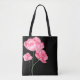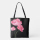 Diese niedliche, stylische Tasche ist in einem schönen rosafarbenen Mohndruck mit schwarzen Gurten zu sehen. Mittlere Größe Farbe Schwarz Passen Sie dieses Objekt an oder kaufen Sie, wie es ist.