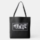 Diese niedliche, großformatige Tasche wird in einem schwarz-weißen Vegas-Druckdesign gezeigt. Passen Sie dieses Objekt an oder kaufen Sie, wie es ist.