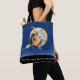 Hexe's Sweet Ride Tote Tasche Hexe und Katze auf Broomstick mit Mond im Hintergrund