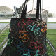 Ein Muster-Design von Fahrrädern in verschiedenen Farben auf einem schwarzen Totbeutel