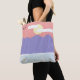 Diese Tasche ist mit einer Darstellung von blauem Wasser und Bergen unter einem orangefarbenen Sonnenuntergangshimmel entworfen, und sie ist bereit für Ihre Besitztümer.