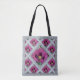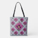 Überall, wo man hingeht, kann man sich eine wunderschöne Totentasche mit Fotos von lila Pappkuchen, umgeben von Rändern, die aus den einzigartigen Baumrindenmustern bestehen, ausbreiten.