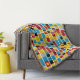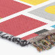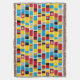 Ein Design aus Streifen mit handgemalten Bändern, Blöcken und Farbflecken in Rot-, Bernstein-, Tief-Gold-, Blau-, Grau- und Weißtönen. Inspiriert durch gemalte Totems.