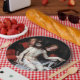 Dieses Design zeigt Kunstwerke von Francesco Ribalta (1565-1628), einem spanischen Maler der Barockzeit. Es zeigt Jesus Christus, nachdem er gekreuzigt worden ist; es gibt eine Wunde auf seiner Brust und seine Haut ist blass und tödlich. Der Körper Jesu wird von zwei Engeln in rotem Kleid aufgehalten.
