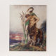 Dieses Design zeigt ein Gemälde des französischen Künstlers Gustave Moreau (1826-1898), der eine wichtige Figur in der Symbolischen Bewegung war. Es zeigt einen jungen Dichter, der vor kurzem gestorben ist und in den Armen eines Zentauers getragen wurde. Die Szene umfasst Elemente aus der griechischen Mythologie des Altertums, sowie Gustave Moreau's eigene kreative Interpretation. Der Zentaur, ein Geschöpf aus der griechischen Mythologie mit dem Oberkörper eines Menschen und dem Unterkörper eines Pferdes, hält den leblosen Dichter in seinen Armen. Das Bild kann als Verkörperung der Idee des künstlerischen Leidens und des Dichters als Märtyrer oder Visionärin gesehen werden. Moreau setzte oft mythologische Tropen und allegorische Themen ein, um philosophische und spirituelle Ideen zu erforschen. Einige Kritiker haben gesagt, dass die Figur des toten Dichters mit seinem leblosen Körper und geschlossenen Augen auf ein Gefühl poetischer Inspiration hindeutet, das im Bereich der Vorstellungskraft weggetragen oder verloren wird. Im Hintergrund ist ein schöner roter Sonnenuntergang. Das Originalwerk wurde um 1890 gemalt, und das Bild hat große Würde und Schönheit. Gustave Moreau produziert diese Arbeit kurz nach dem Tod seines Freundes und Begleiters Alexandrine Dureux. Das Gemälde wird jetzt im Musée Gustave Moreau in Paris ausgestellt.