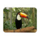 In einem üppigen tropischen Regenwald, schmuddelt ein lebendiger Toucan auf einem moosbewachsenen Baumzweig, dessen auffallender, überdimensionaler Schnabel brillant gegen das üppige Grün der Vegetation kontrastiert. Der eisige Absturz des Vogels und der intensive Blick sorgen für ein faszinierendes Bild, das die Schönheit und exotische Attraktionen zeigt.