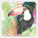 Toucan Portrait mit tropischen Blätter Quadratischer Aufkleber