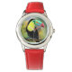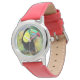 Kinderuhr aus Edelstahl mit rotem Lederarmband