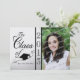 Klassische und elegante Abschluss-Einladung oder Ankündigung in Schwarz. Passen Sie sich mit Ihrem eigenen Text und Foto für Ihren Senioren an.