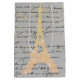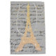 Originelles Design mit dem Eiffelturm. Manuskript alte Konfetti im Hintergrund.