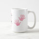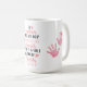Diese Tasse ist eine liebevolle Hommage an die Liebe und Führung, die eine Mutter bietet. Das zentrale Design lautet: "Eine Mutter hält ihren Kindern für eine Weile die Hände und ihre Herzen für immer", in eleganter Typografie gefertigt und mit sanften rosa Herzen verziert. Durch eine persönliche und künstlerische Touch dekorieren rosa Handdrucke die Seiten der Tasse, symbolisieren die Pflege der Bindung und die liebevollen Hände, die das Leben formen. Diese Tasse ist perfekt für den Muttertag oder für jeden Anlass geeignet und erschließt das Wesen der Fürsorge und der ewigen Verbindung einer Mutter.