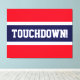 Dieses Sportfußballdesign besticht durch feinen TOUCHDOWN!-Text in einem breiten, blau-marineblauen Streifen vor einem hellen roten Hintergrund. Der Text kann personalisiert sein.