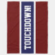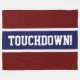 Dieses sportliche Design ist mit fett gedrucktem TOUCHDOWN!-Text in einem breiten marineblau-blauen Mittelstreifen versehen, der vor tiefroten Hintergrundstreifen in Weiß hervorgehoben ist. Der Text ist optional und kann personalisiert sein.