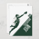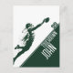 Diese Postkarte mit einem sehr anpassbaren Fußball-Thema bietet eine Action-Szene, in der ein Fußballspieler fliegt, um den Ball über die Touchdown-Linie zu fangen. Dies ist ein großartiges Design für Profi-oder Amateur-American Football-Spieler, wo Sie den Namen, die Jersey-Nummer, und die Nachricht anpassen können.