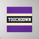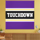 Dieses sportliche, fußballbegeisterte Design zeichnet sich durch fett gedruckten TOUCHDOWN-Text in einem hervorgehobenen, schwarzen Streifen mit zwei weißen und gelben Rennstreifen gegen königlich lila äußere Streifen aus. Der Text kann personalisiert sein.