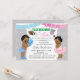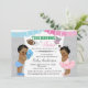 Touchdowns oder Tutusgeschlecht zeigen Einladungen zur Babydusche mit einem bezaubernden Afroamerikaner-Baby und -Mädchen auf hübschem, grauem, Zickzack Hintergrund mit rosa und blauen Bannern. Diese niedliche Touchdowns oder Tutus Baby Dusche Einladung ist einfach für Ihre Veranstaltung angepasst, indem Sie einfach Ihre Details hinzufügen.