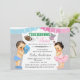 Touchdowns oder Tutus-Gender zeigen Einladungen mit brünettem, dunkelhaarigen Baby und Mädchen auf hübschem, grauem Zickzack Hintergrund mit rosa und blauen Bannern. Diese niedliche Touchdowns oder Tutus Baby Dusche Einladung ist einfach für Ihre Veranstaltung angepasst, indem Sie einfach Ihre Details hinzufügen.
