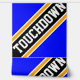 Dieses sportliche Fußball-Design bietet athletischen TOUCHDOWN-Text in hervorgehobenen breiten diagonalen schwarzen, weißen und goldgelben Rennstreifen vor hellgrünem Hintergrund. Die ersten und letzten Buchstaben des Textes laufen von den Designkanten mit einem dynamischen Bannereffekt ab. Das Design ist wiederholt gefliest, um einen super coolen Effekt zu erzielen. Die Farben und Texte in diesem Design können personalisiert sein.