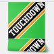 Dieses sportliche Fußball-Design bietet athletischen TOUCHDOWN-Text in hervorgehobenen breiten diagonalen schwarzen, weißen und goldgelben Rennstreifen vor hellgrünem Hintergrund. Die ersten und letzten Buchstaben des Textes laufen von den Designkanten mit einem dynamischen Bannereffekt ab. Das Design ist wiederholt gefliest, um einen super coolen Effekt zu erzielen. Die Farben und Texte in diesem Design können personalisiert sein.