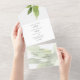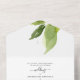 Wasserfarbene grüne Blätter Hochzeit Einladung. Brautpaare. Weiße Rückseite. Modern. Swash. Alles in einem. Touchs der Frühjahrssammlung.