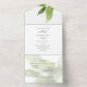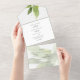 Wasserfarbene grüne Blätter Hochzeit Einladung. Brautpaare. Weiße Rückseite. Modern. Swash. Alles in einem. Initialen an der Außenseite der gefalteten Einladung. Green. Touchs der Frühjahrssammlung