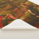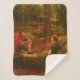 This design features a painting by the British Pre-Raphaelite artist John Collier (1850–1934). It is a richly detailed, character-driven painting that brings to life two secondary figures from Shakespeare’s play "As You Like It". Collier focuses on the unlikely romantic pairing between Touchstone, the court jester, and Audrey, a simple shepherdess. In the play, their relationship is deliberately unpoetic and humorous, a counterpoint to the idealized romances of the main characters. Collier translates and transports this contrast into visual form, creating a portrait of two people whose temperaments, social backgrounds, and attitudes toward love could hardly be more different. Touchstone is rendered with an air of intelligence and sly wit. His brightly colored jester’s costume, complete with elaborate patterns and bold tones, immediately signals his role as a fool, yet his expression also seems to make clear that he is the sharpest observer on the stage. Collier captures him in a moment of poised confidence, leaning slightly toward Audrey with a knowing, almost teasing gaze. The jester’s posture and facial expression suggest that he sees through the absurdities of both courtly and pastoral life, and that his courtship of Audrey is an amused, playful act as much as a genuine pursuit. Audrey, by contrast, is painted with simplicity and sincerity. Her clothing is plain and rustic, and Collier softens her features to convey her innocence and straightforward nature. She sits quietly beside Touchstone, her expression gentle, almost timid. Collier does not exaggerate her simplicity; instead, he allows her modesty to speak for itself, creating a character who is kind, humble and earnest in ways completely unlike her companion. Her presence in the painting brings a sense of grounded calm that balances Touchstone’s clever and playful energy. The setting, likely the Forest of Arden, is depicted with naturalistic detail, providing a peaceful woodland backdrop. This pastoral environment evokes the play’s themes of rustic escape and transformation while also highlighting the tension between courtly artifice (embodied by Touchstone) and rural simplicity (represented by Audrey). Touchstone’s wit and performative personality are seen beside Audrey’s innocence and sincerity, creating a relationship that is both charming and comically mismatched. Through careful characterization, detailed costuming, and a harmonious natural setting, Collier translates Shakespeare’s comic subplot into a vivid and thoughtfully composed image that highlights the enduring appeal of these two unconventional lovers. The original artwork of "Touchstone and Audrey" was painted by John Collier in 1890.